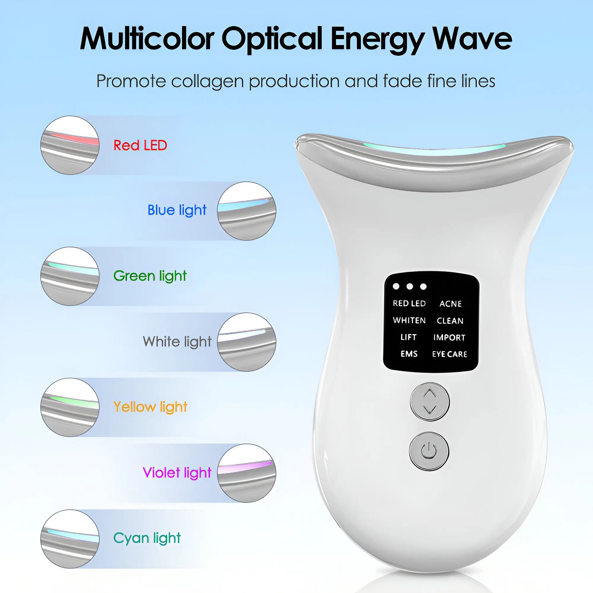 Experience the pinnacle of skincare innovation with this all-in-one device. Combining LED photon therapy, EMS vibration, and heating, it relaxes, lifts, and rejuvenates your face and neck—delivering spa-quality anti-wrinkle and firming treatments at home.