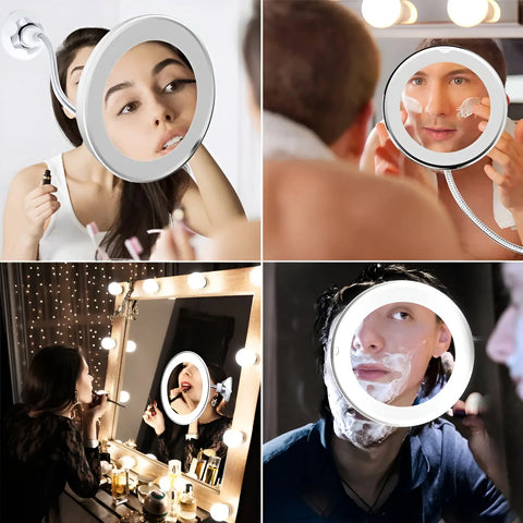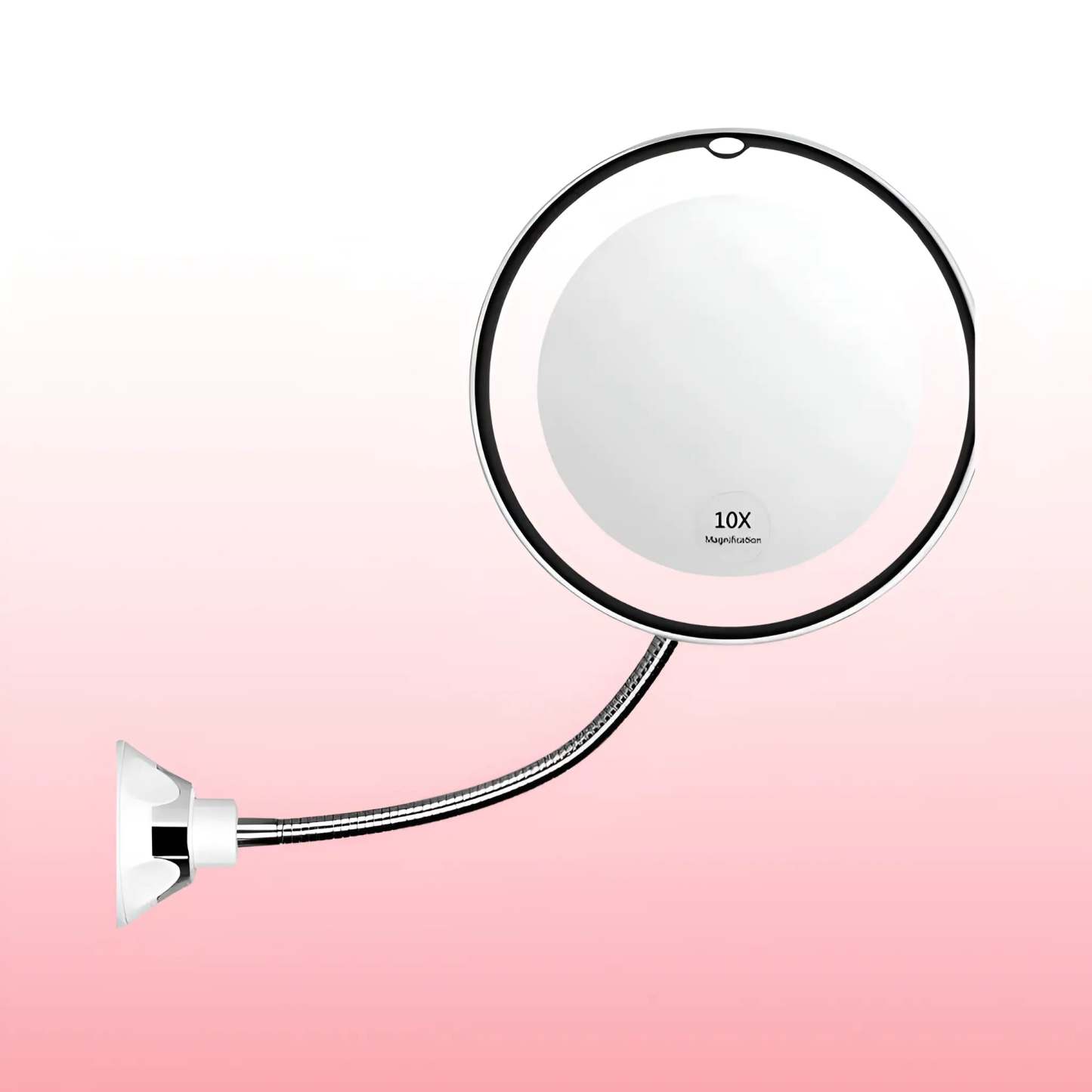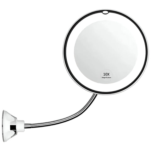 Say goodbye to makeup mishaps with our 360 Degree Swivel Flexible Gooseneck 10X Magnifying Mirror—a solution to your beauty woes. No more fixed-position limitations—adapt the mirror effortlessly to your preferred angle for flawless application. This magnifying mirror with a flexible gooseneck offers a clear, close-up view, eliminating the frustration of missed nuances. Elevate your beauty experience with a mirror that combines flexibility and magnification seamlessly. Doing your makeup has never been this easy! 10x Magnifying LED Lighted Mirror is just your regular vanity mirror!
