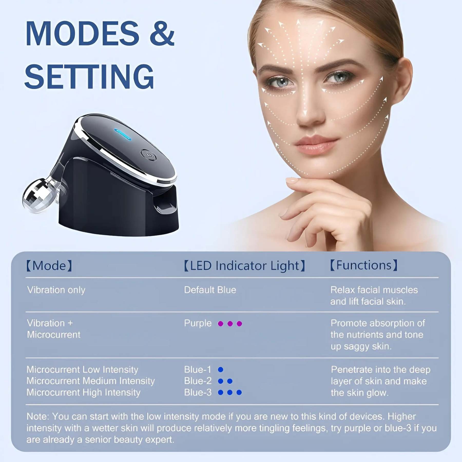 • Microcurrent (low, medium, high gears)
