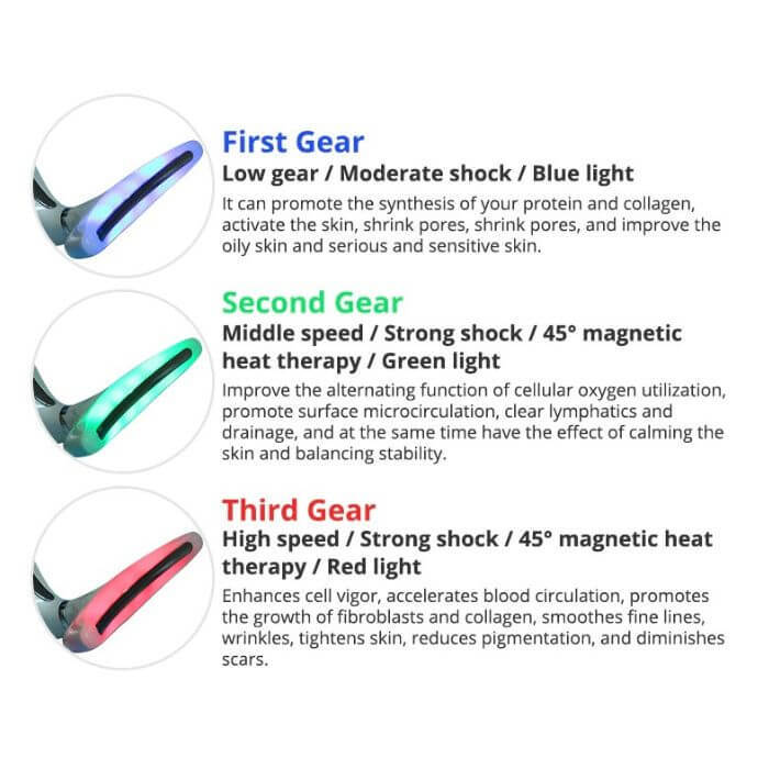 This innovative device combines vibration, 3-color LED light therapy, and magnetic heat treatment to lift, tighten, and rejuvenate your skin.
