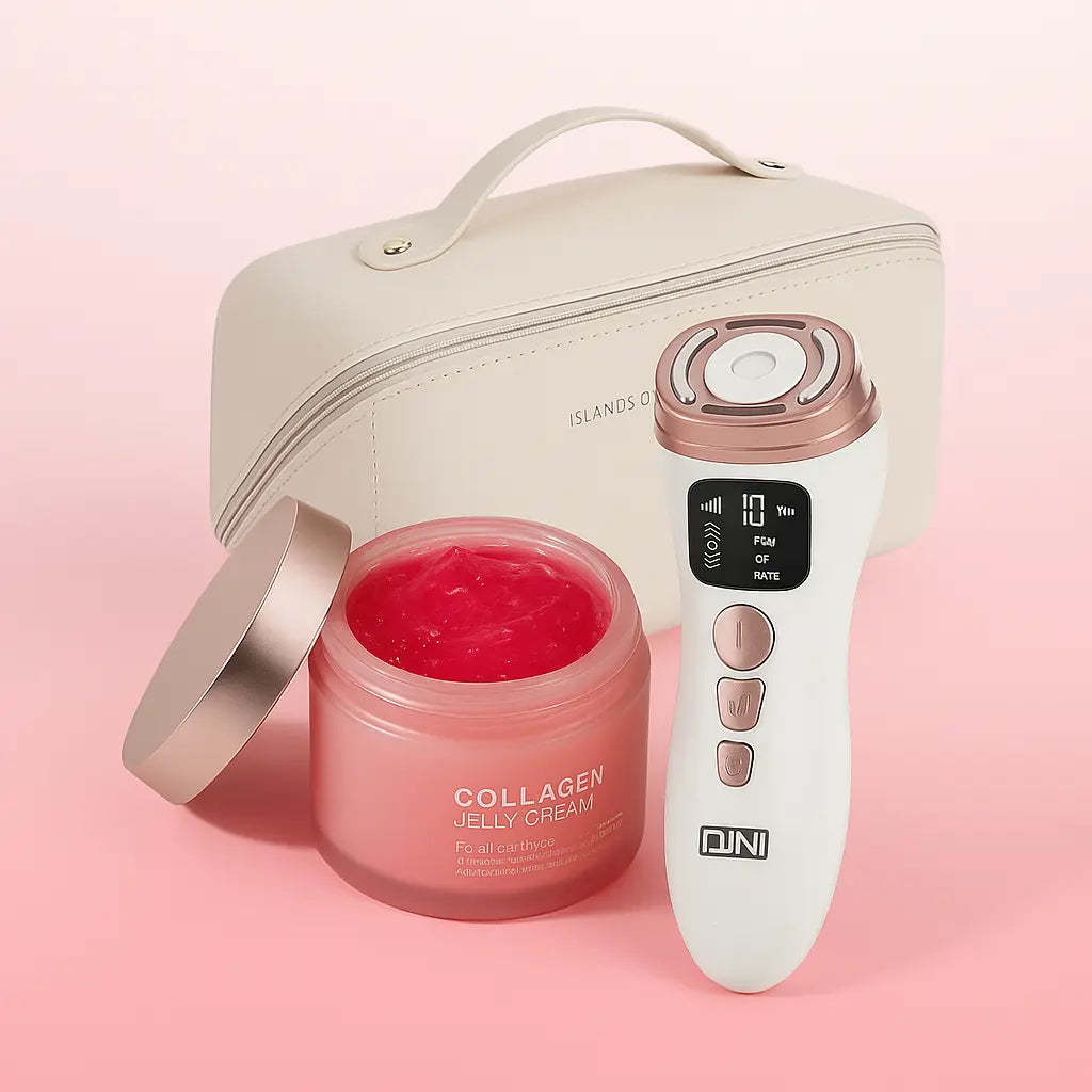 • Seamless Daily Ritual — Use the Mini HIFU RF Device first for targeted skin toning, follow with the Collagen Jelly Cream to enhance absorption and hydration, and neatly pack everything—and beyond—in the spacious cosmetic bag for on-the-go beauty.