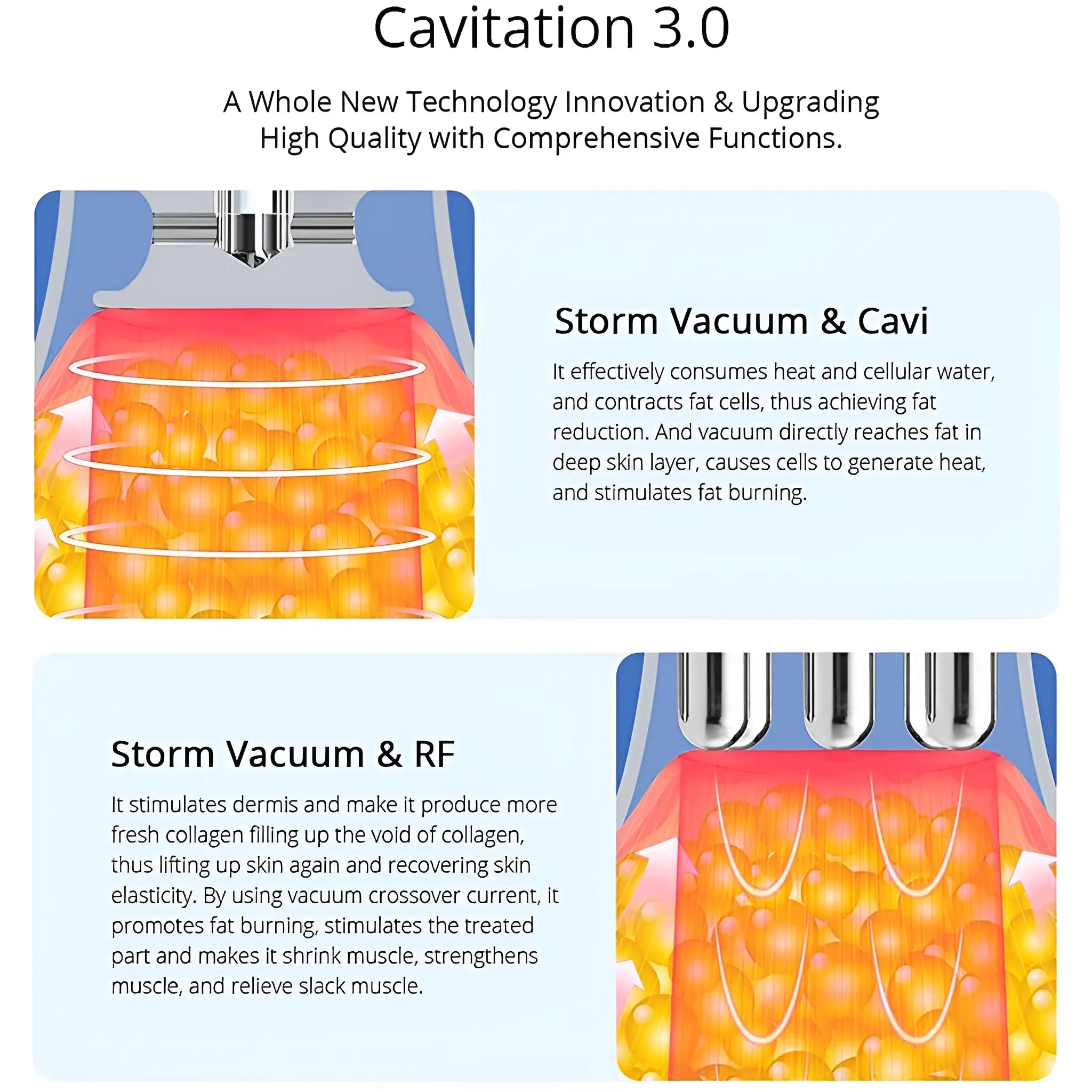 Storm vacuum targets fat buildup while the cavitation probe breaks it down—amplifying slimming results.