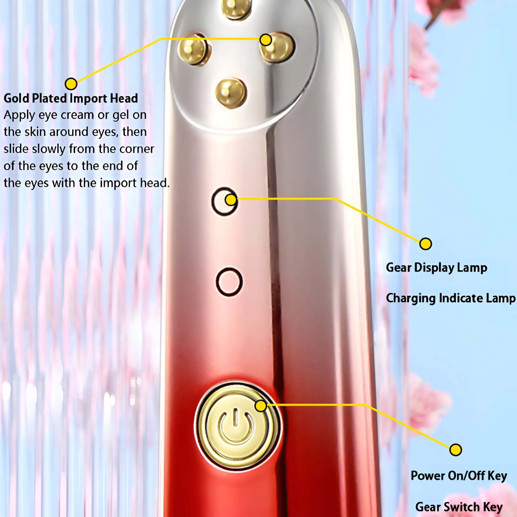 Combining 630nm red light, gentle 40°C heat, and 8,000 vibrations per minute, this device enhances eye cream absorption, massages tired skin, relieves fatigue, and firms delicate eye areas.