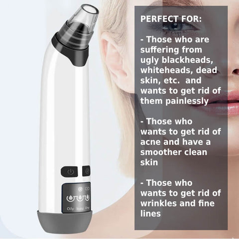 CleanCare - Vacuum Blackhead Remover and Pore Cleaner is perfect for those who wish to eliminate blackheads, whiteheads, and dead skin cells for a more radiant and healthy complexion. It is suitable for anyone seeking to improve the appearance of their skin and achieve a smoother, clearer, and more youthful look. Say goodbye to blackheads and hello to a glowing complexion with CleanCare.